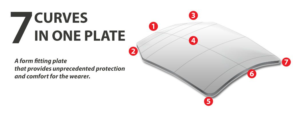 When placed against the chest, the 7-curve plate sits comfortably and covers the 20 most millimeters of the rib cage for better protection of internal organs and to aid in ballistic resistance.